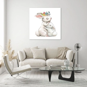 Obraz na szkle - Dwa przytulające się króliki w pastelowych kolorach - 50x70cm - Nie ma jak u mamy - Nowoczesna dekoracja ścienna do salonu, kuchni i sypialni ARTTOR