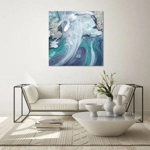 Obraz na szkle - Abstrakcyjne wiry w odcieniach błękitu i bieli - 140x50cm - Nurty błękitu - Nowoczesna dekoracja ścienna do salonu i sypialni ARTTOR