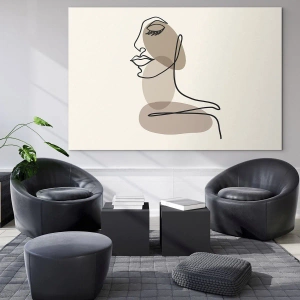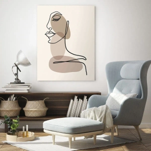 Obraz na szkle - Minimalistyczny kobiecy portret wykonany linią ciągłą - 100x70cm - Pewna linia piękna - Nowoczesna dekoracja ścienna do salonu, kuchni i sypialni ARTTOR