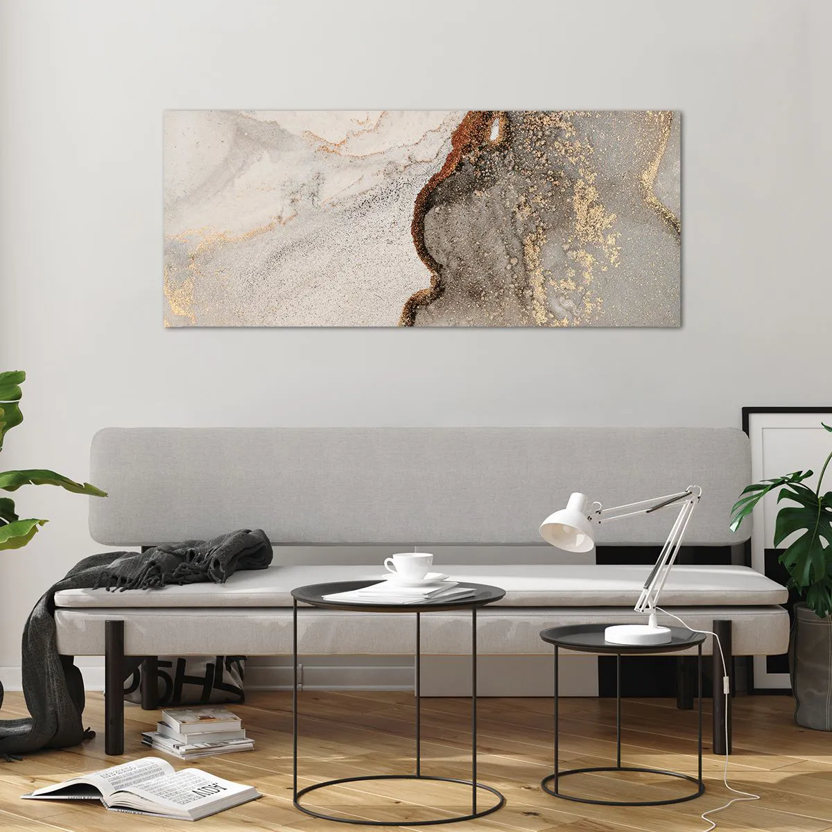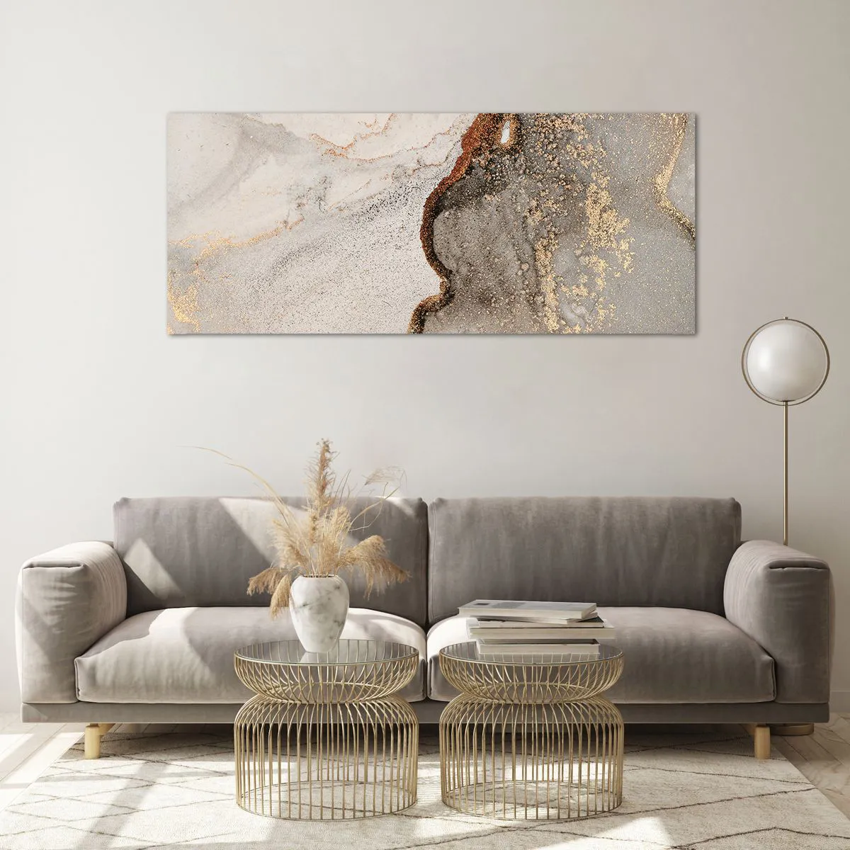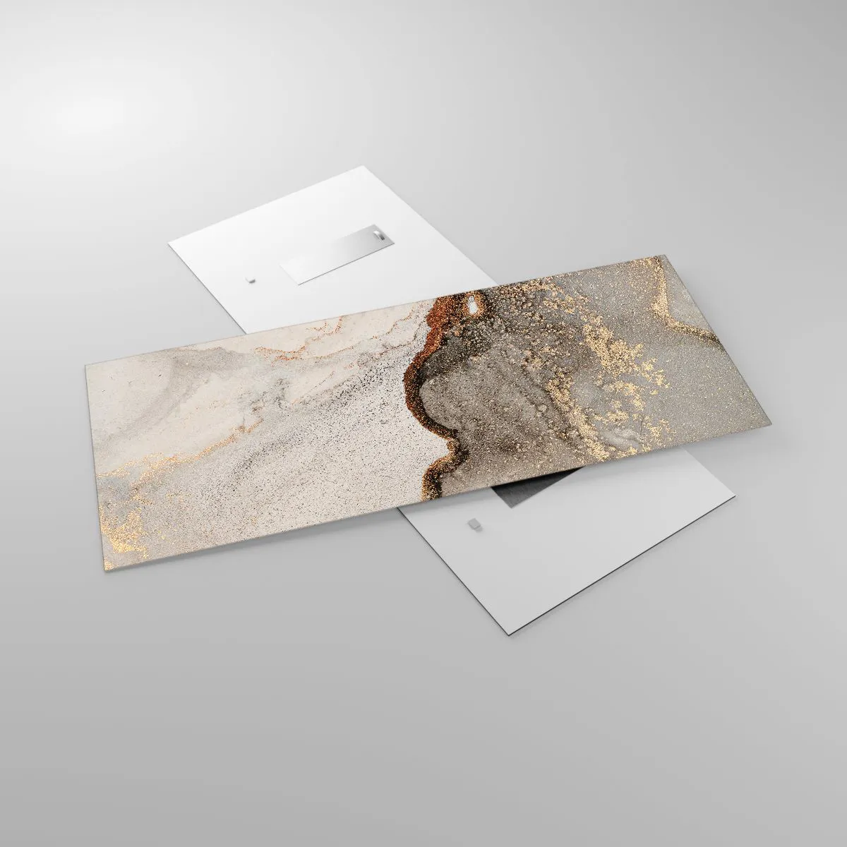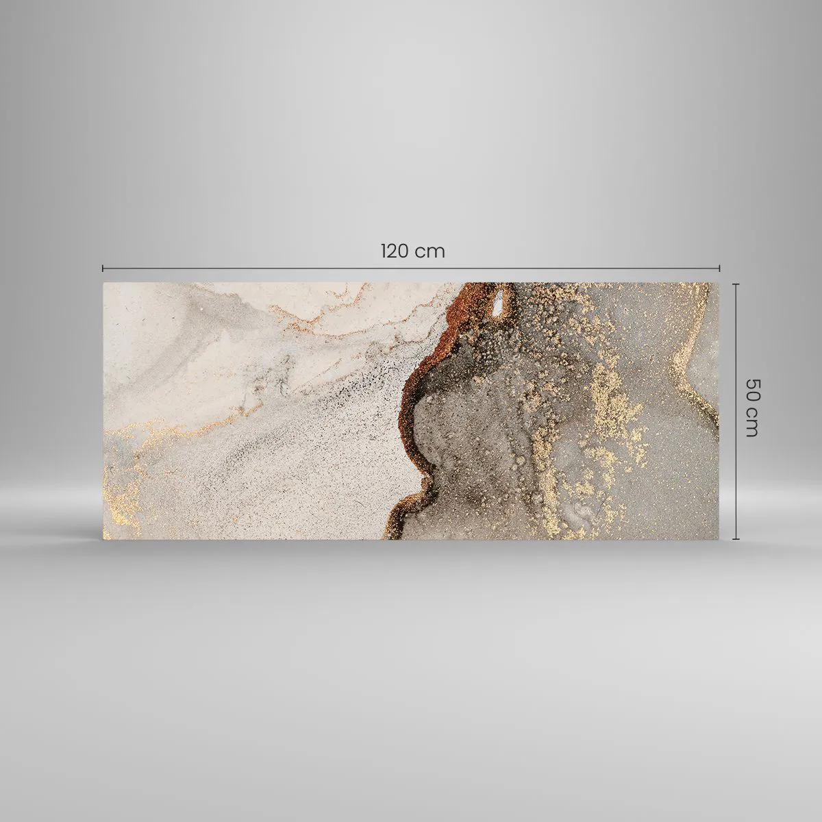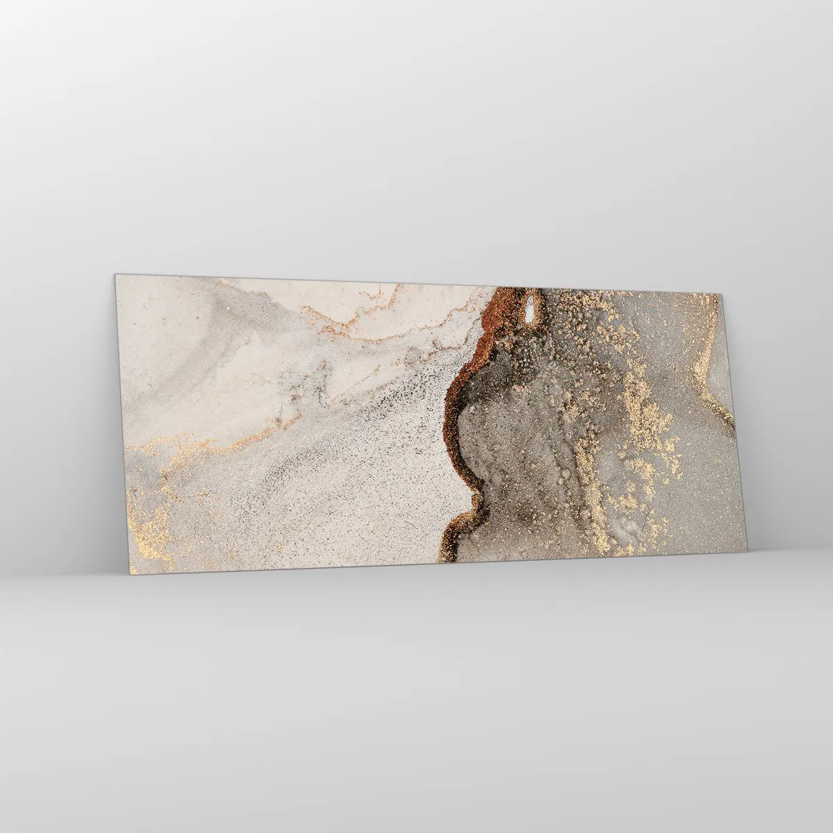 Obraz na szkle - Abstrakcyjny motyw z odcieniami złota i szarości - 120x50cm - Na granicy barw - Nowoczesna dekoracja ścienna do salonu i sypialni ARTTOR