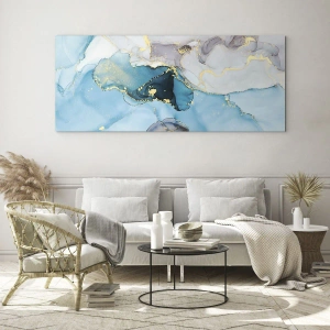 Obraz na szkle - Turkusowe i szare fale z akcentami złota - 50x70cm - Studium spotkania szarości z turkusem - Nowoczesna dekoracja ścienna do salonu, kuchni i sypialni ARTTOR