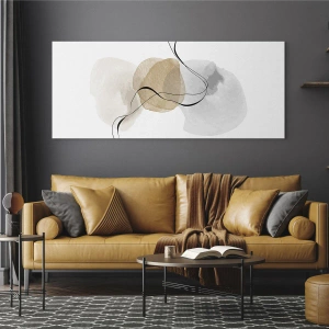 Obraz na szkle - Minimalistyczna abstrakcja w odcieniach beżu i szarości - 160x50cm - Powietrzne paciorki - Nowoczesna dekoracja ścienna do salonu i sypialni ARTTOR