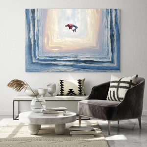 Obraz idealnie sprawdzi się jako obraz do salonu, sypialni, biura, przestrzeni twórczej lub nowoczesnego wnętrza z charakterem. Wnosi inspirację, świeżość i lekkość – pobudza do myślenia i zachęca do wyjścia poza schemat. Może również stanowić mocny punkt aranżacji w loftowych przestrzeniach, kawiarniach lub hotelowych holach. Dzięki swojej wielowymiarowej symbolice i kompozycji, trafia do osób ceniących sztukę, która opowiada historię i pozostawia ślad. Kompozycja świetnie współgra z wnętrzami, w których dominuje prostota i estetyka z elementem artystycznego akcentu. Obraz wprowadza do wnętrza motyw ruchu i przestrzeni, optycznie je powiększając i dodając głębi. Dzięki zastosowaniu zimnych i ciepłych tonów, obraz dobrze harmonizuje z różnymi paletami kolorystycznymi we wnętrzu – od szarości po pastele.