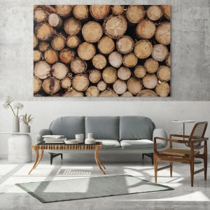 Obraz na szkle - Stosy ściętych pni drzew ułożone w harmonii - 120x50cm - Nowy początek - Nowoczesna dekoracja ścienna do salonu i sypialni ARTTOR