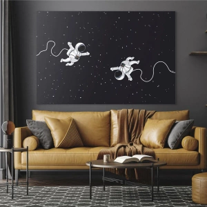 Obraz na szkle - Astronauci unoszący się w kosmosie na tle gwiazd - 80x120cm - Kosmiczny pląs - Nowoczesna dekoracja ścienna do salonu i sypialni ARTTOR
