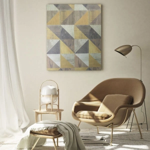 Obraz na szkle - Geometryczna kompozycja trójkątów w odcieniach ziemi - 120x50cm - Pod kątem trójkąta - Nowoczesna dekoracja ścienna do salonu i sypialni ARTTOR