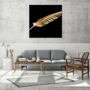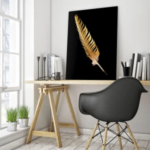 Obraz na szkle - Złote pióro na czarnym tle - 120x50cm - Nie lada piórem opatrzony… - Nowoczesna dekoracja ścienna do salonu i sypialni ARTTOR