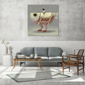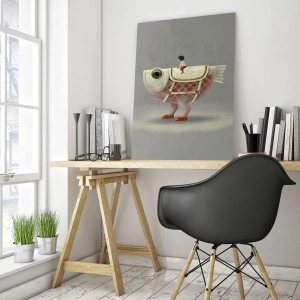 Obraz na szkle - Fantazyjny jeździec na rybie z nogami i siodłem - 70x100cm - Ryboński jeździec - Nowoczesna dekoracja ścienna do salonu i sypialni ARTTOR