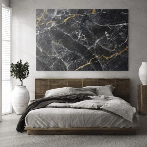 Obraz na szkle - Czarno-złote detale marmurowej powierzchni - 120x50cm - Wewnętrzne życie kamienia - Nowoczesna dekoracja ścienna do salonu i sypialni ARTTOR