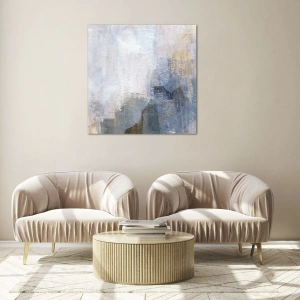Obraz na szkle - Subtelne abstrakcyjne plamy w odcieniach błękitu i beżu - 120x50cm - Tony i akordy barw - Nowoczesna dekoracja ścienna do salonu i sypialni ARTTOR