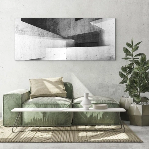 Obraz na szkle - Geometryczne kształty w monochromatycznej kompozycji - 160x50cm - Struktura przestrzeni - Nowoczesna dekoracja ścienna do salonu i sypialni ARTTOR