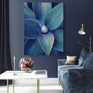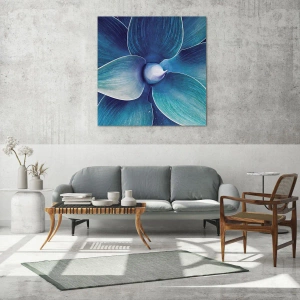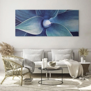 Obraz na szkle - Zbliżenie na abstrakcyjny kwiat w odcieniach błękitu - 120x50cm - Zbłękitniały od nieba - Nowoczesna dekoracja ścienna do salonu i sypialni ARTTOR