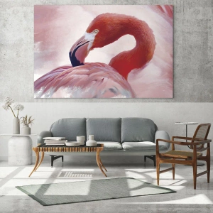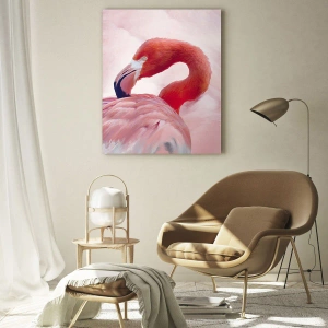 Obraz na szkle - Różowy flaming z gracją zwrócony w bok - 100x70cm - Ptasia uroda - Nowoczesna dekoracja ścienna do salonu, kuchni i sypialni ARTTOR