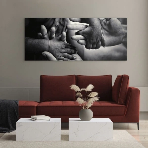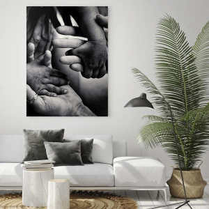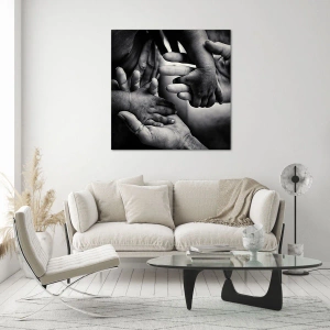 Obraz na szkle - Czarno-białe dłonie różnych pokoleń - 80x120cm - Być człowiekiem - Nowoczesna dekoracja ścienna do salonu i sypialni ARTTOR