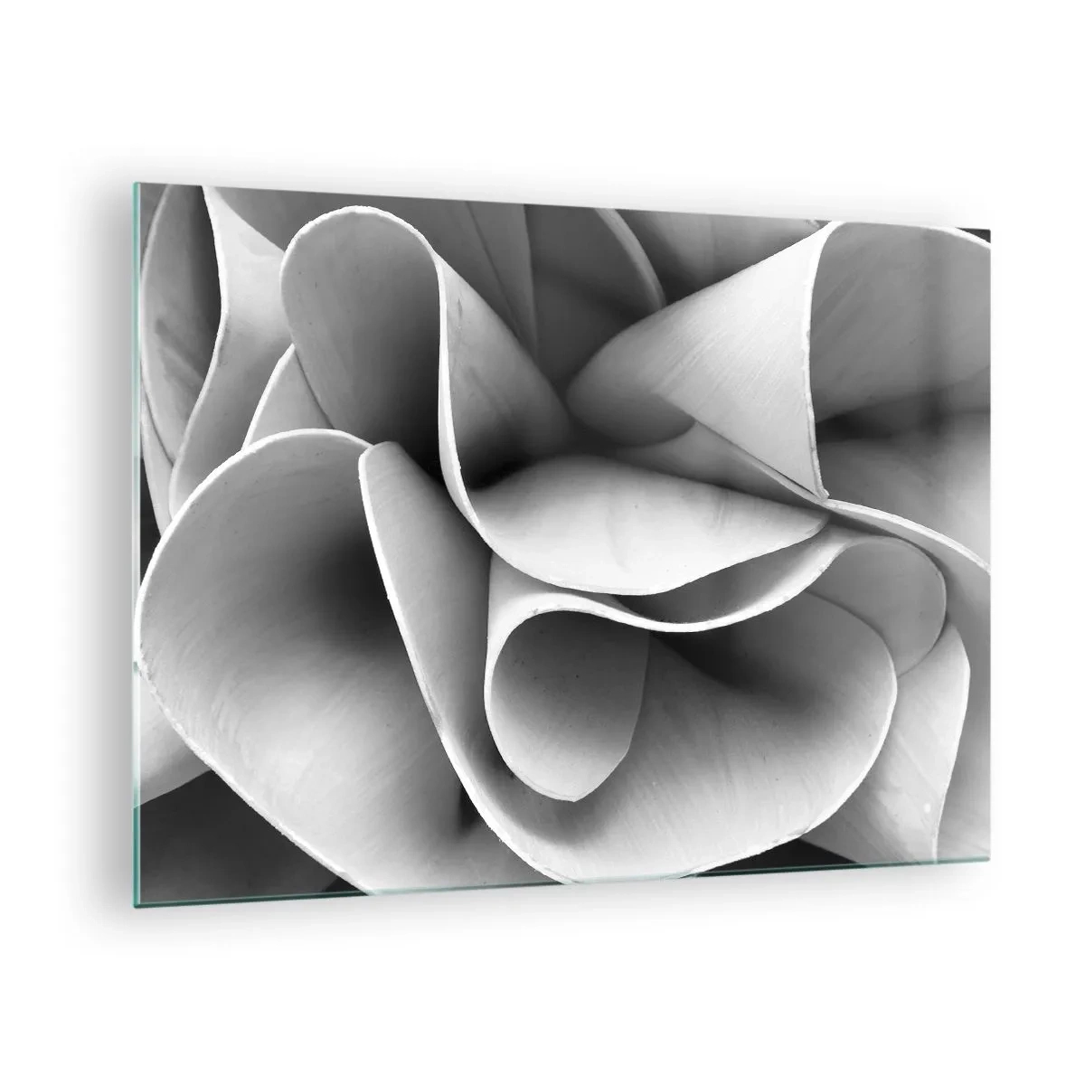 Obraz na szkle "Dzieje się w przestrzeni" przedstawia czarno-białe zbliżenie na intrygujące, spiralne kształty, które przywodzą na myśl rozwijające się płatki lub skręcone formy organiczne. Kompozycja jest abstrakcyjna, ale pełna głębi – jej forma prowadzi wzrok w głąb kadru, odkrywając kolejne warstwy i załamania światła. To ujęcie balansujące na granicy geometrii i natury, które doskonale oddaje tytułowy ruch i dynamikę zamkni...