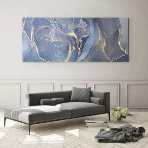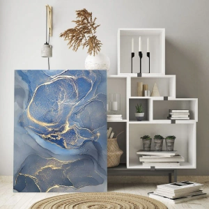 Obraz na szkle - Abstrakcyjne niebieskie wzory ze złotymi akcentami - 80x120cm - Złoty pył - Nowoczesna dekoracja ścienna do salonu i sypialni ARTTOR