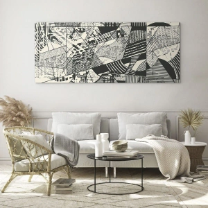 Obraz na szkle - Czarno-biała abstrakcja z dynamicznymi geometrycznymi wzorami - 100x70cm - Dynamika współczesności - Nowoczesna dekoracja ścienna do salonu, kuchni i sypialni ARTTOR