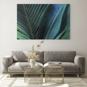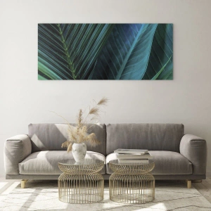 Obraz na szkle - Zbliżenie na tropikalne zielone liście - 160x50cm - Anatomia zieleni - Nowoczesna dekoracja ścienna do salonu i sypialni ARTTOR