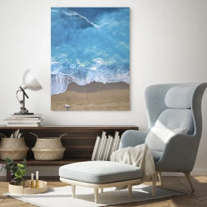 Obraz na szkle - Widok na plażę i fale morskie z lotu ptaka - 120x50cm - Siła błękitu - Nowoczesna dekoracja ścienna do salonu i sypialni ARTTOR