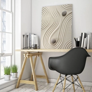 Obraz na szkle - Minimalistyczny piasek z kamieniami i geometrycznymi wzorami - 120x80cm - Dotyk ciepła - Nowoczesna dekoracja ścienna do salonu, kuchni i sypialni ARTTOR