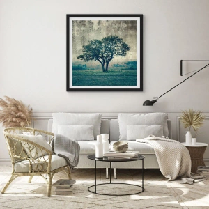 Plakat w czarnej ramie - Jabłoń na błękitnym błoniu? - 40x40 cm