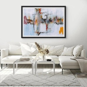 Plakat w czarnej ramie - Abstrakcyjny wzór z żywymi kolorami na jasnym tle - 100x70cm - Patykiem na wodzie - Nowoczesna dekoracja ścienna do salonu i sypialni ARTTOR