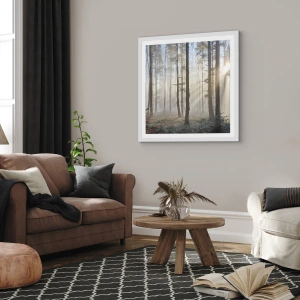Plakat w białej ramie - Mgła też się zbudziła - 70x100 cm