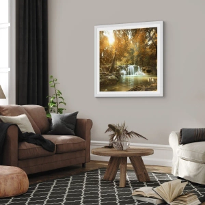 Plakat w białej ramie - Parkowa kaskada - 30x30 cm