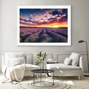 Plakat w białej ramie - Lawendowy świat - 70x100 cm