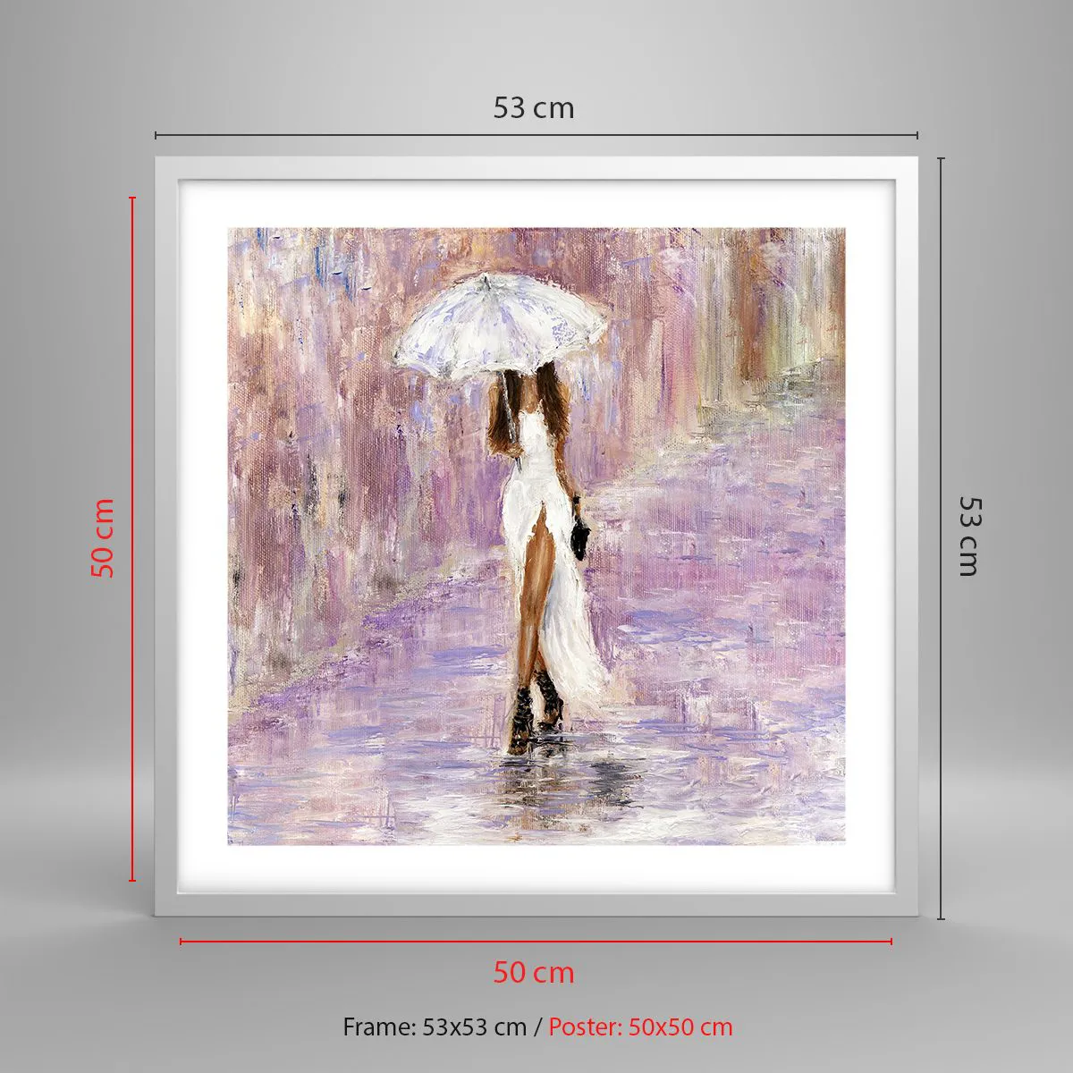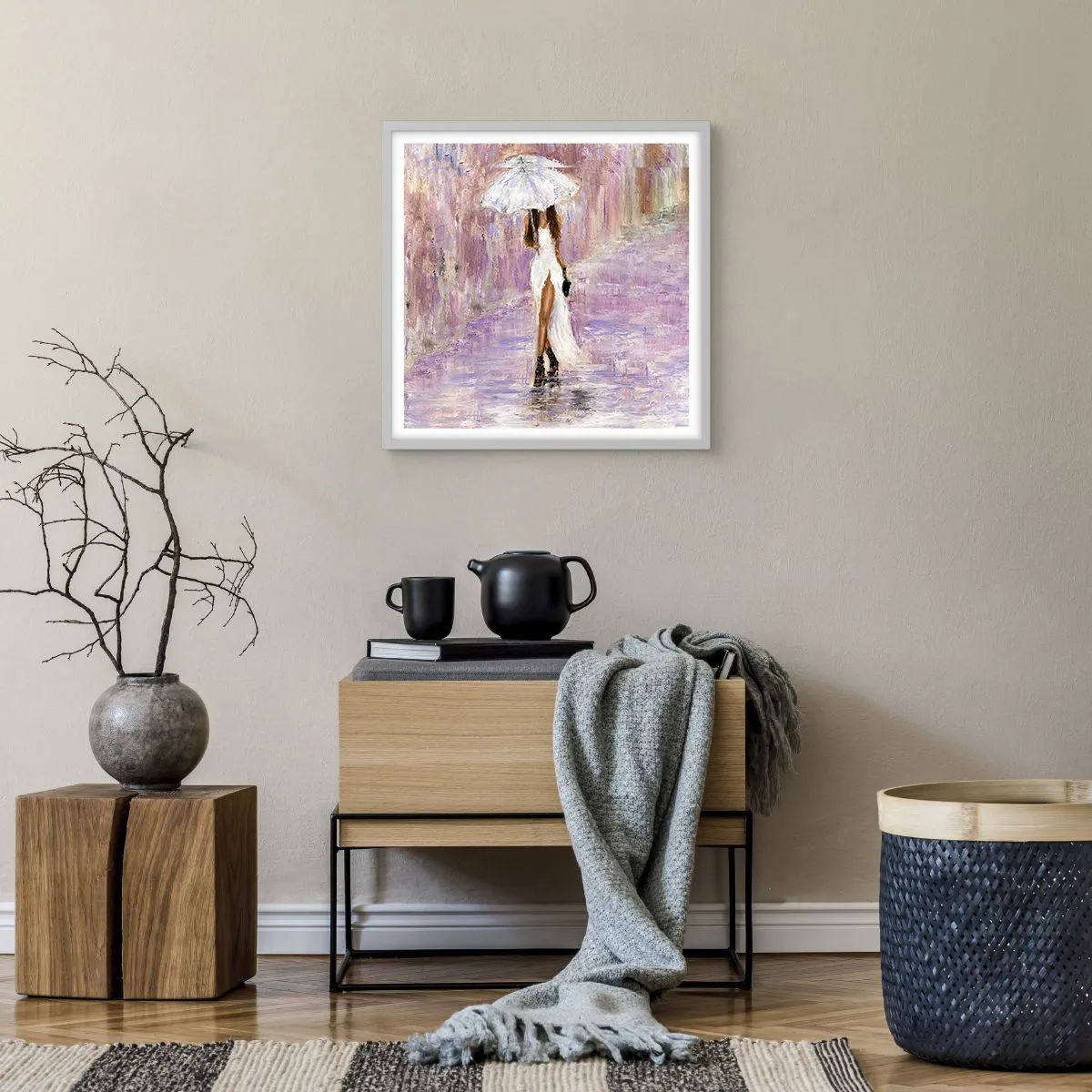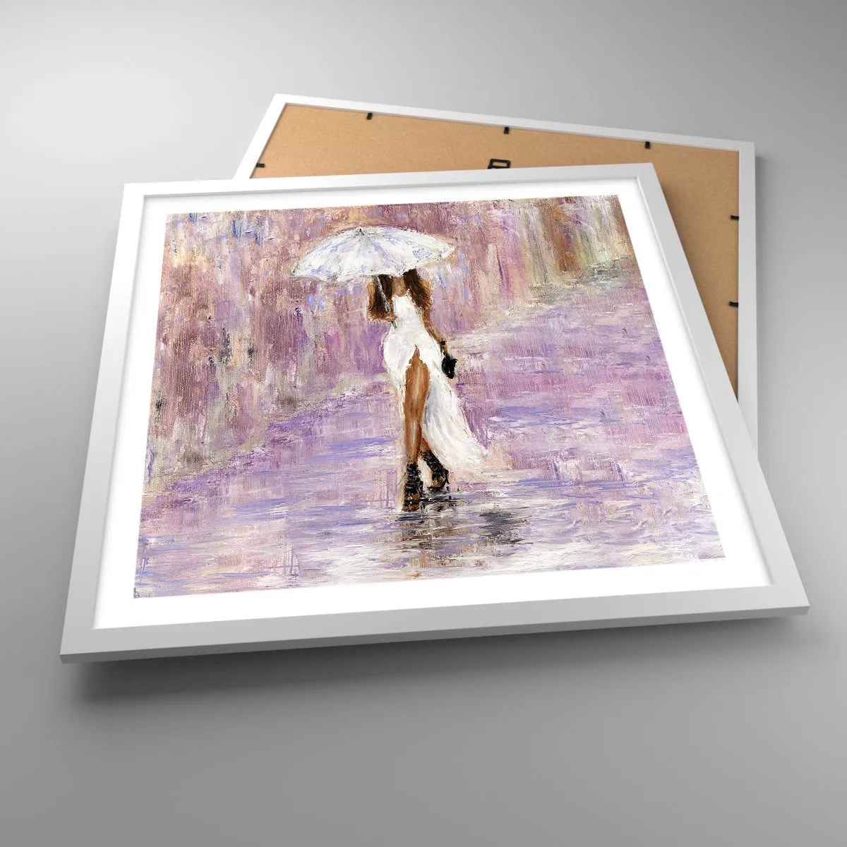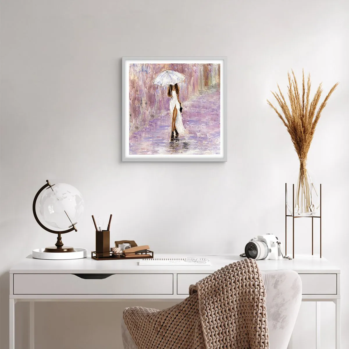 Plakat w białej ramie - W liliowym deszczu - 50x50 cm