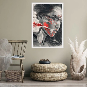 Plakat - Artystyczny portret z czerwonym akcentem - 50x70cm - W oparach absurdu - Nowoczesna dekoracja ścienna do salonu, kuchni i sypialni ARTTOR