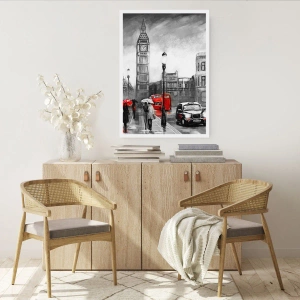 Plakat - Scena z Londynu w czarno-białym stylu z czerwonymi akcentami - 100x70cm - Wcale nie szare miasto - Nowoczesna dekoracja ścienna do salonu i sypialni ARTTOR