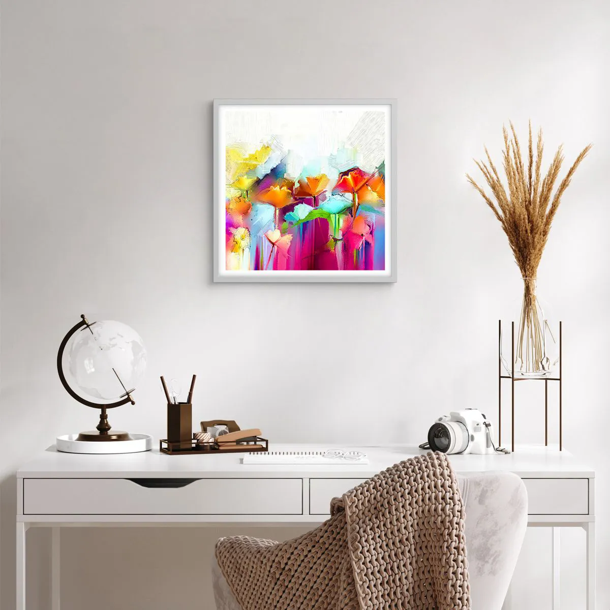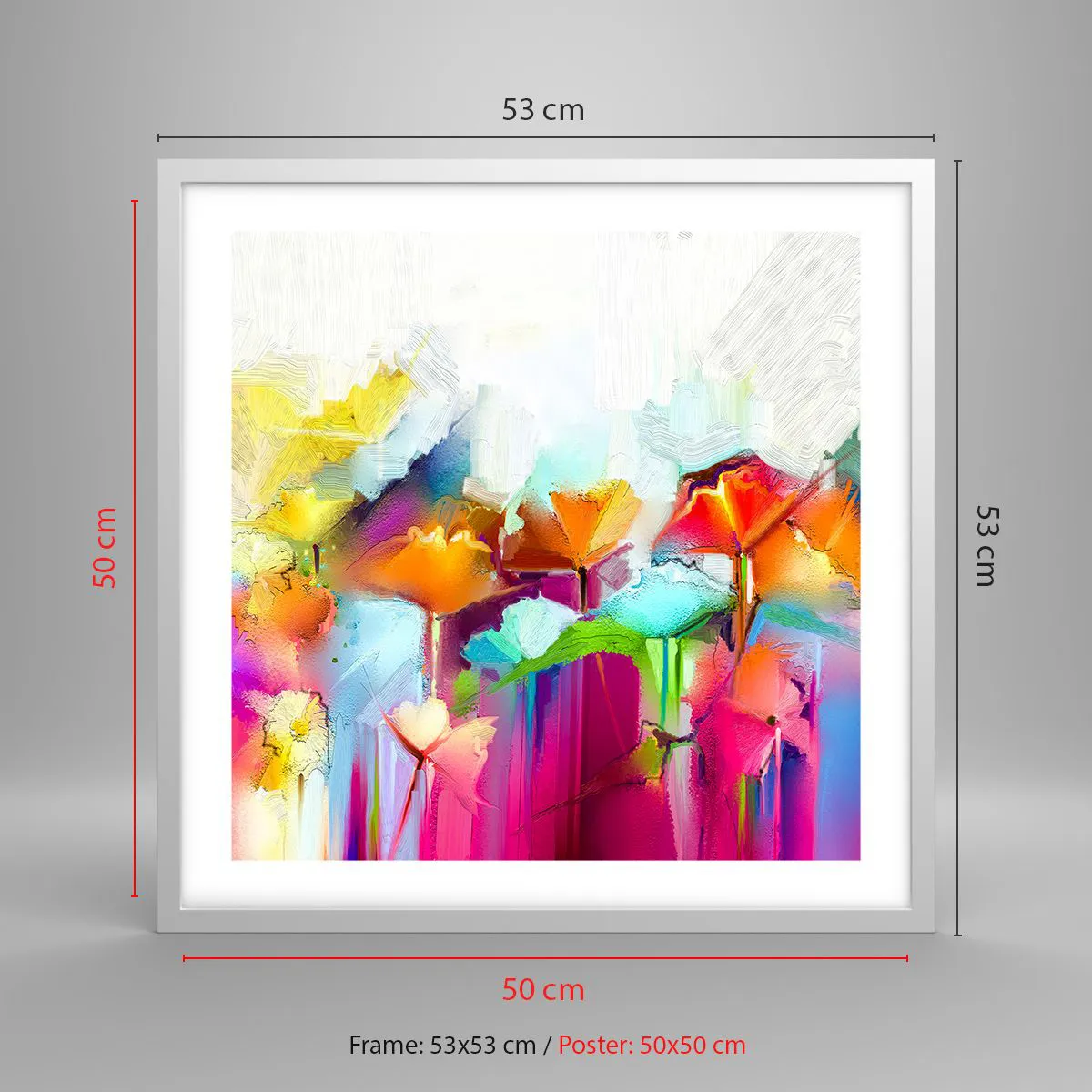 Plakat w białej ramie - Tęcza zakwitła - 50x50 cm