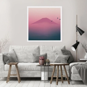 Plakat - Minimalistyczny krajobraz góry w odcieniach różu i fioletu - 50x70cm - Wędrowcy ponad chmurami - Nowoczesna dekoracja ścienna do salonu, kuchni i sypialni ARTTOR