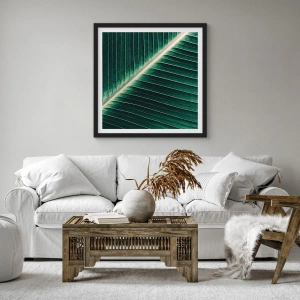 Plakat w czarnej ramie - Struktura zielonego liścia w zbliżeniu - 70x50cm - Rytm natury - Nowoczesna dekoracja ścienna do salonu i sypialni ARTTOR