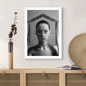 Plakat w białej ramie - Portret nieco surrealistyczny - 60x60 cm