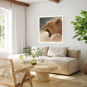 Plakat - Zbliżenie na wściekłą lwicę w pełnym ruchu - 50x70cm - Spróbuj nie posłuchać - Nowoczesna dekoracja ścienna do salonu, kuchni i sypialni ARTTOR