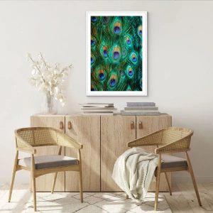 Plakat w białej ramie - Pawiookie spojrzenie - 40x40 cm