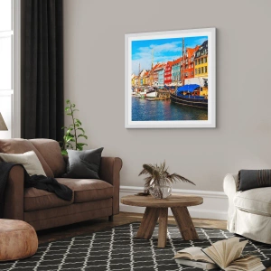 Plakat w białej ramie - Radosne nabrzeże - 30x30 cm