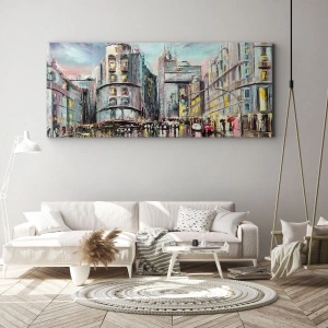Wieczorny pejzaż miejski to doskonała propozycja dla osób ceniących sztukę związaną z życiem w metropolii oraz motywy dekoracyjne oddające ducha miasta. Żywe refleksje światła w połączeniu z delikatną kolorystyką tworzą dzieło pełne emocji i inspiracji, doskonałe do wnętrz nowoczesnych i stylowych.
