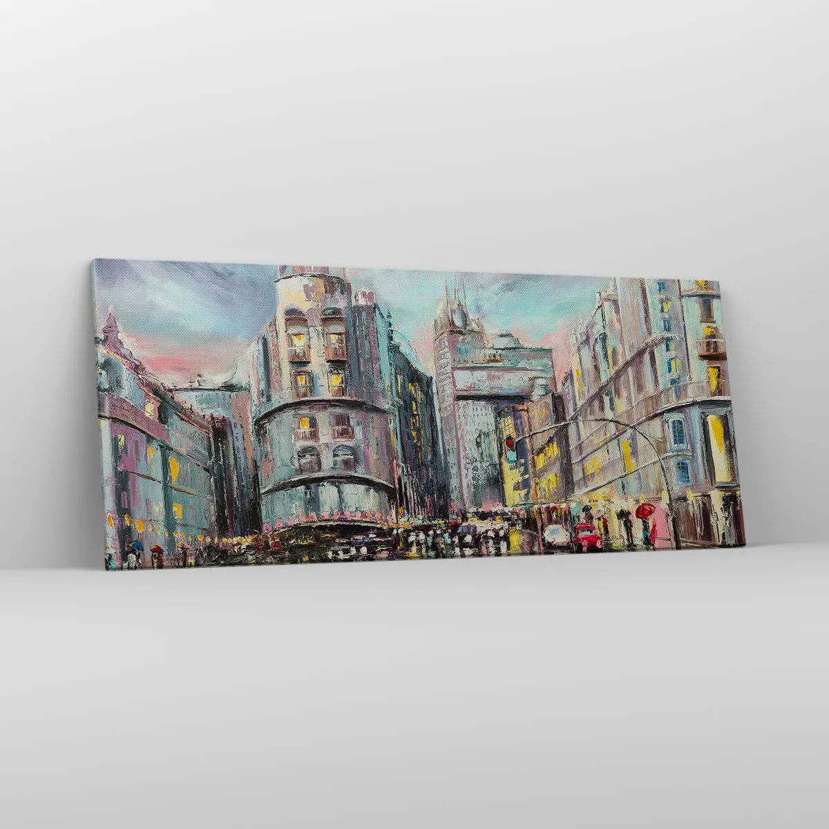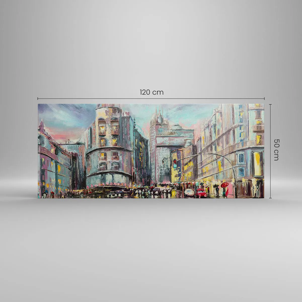 Obraz na płótnie - Wieczorny widok na miasto z odbiciami na mokrej ulicy - 120x50cm - To będzie udany wieczór - Nowoczesna dekoracja ścienna do salonu i sypialni ARTTOR