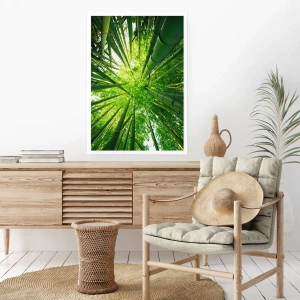 Plakat - Widok w górę przez zielony bambusowy gaj - 100x70cm - W bambusowym gaju - Nowoczesna dekoracja ścienna do salonu i sypialni ARTTOR