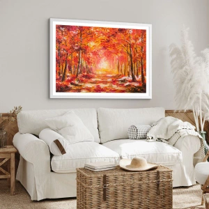 Plakat w białej ramie - Miedziany las - 40x40 cm