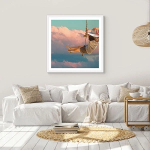 Plakat w białej ramie - Zabawa w obłokach - 30x30 cm