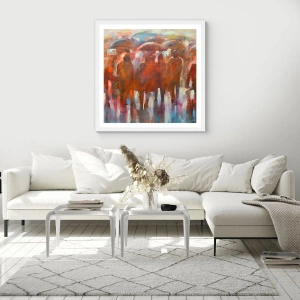 Plakat w białej ramie - Równi w deszczu i mgle - 70x50 cm