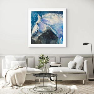 Plakat w białej ramie - Portret w błękitnej poświacie - 70x50 cm