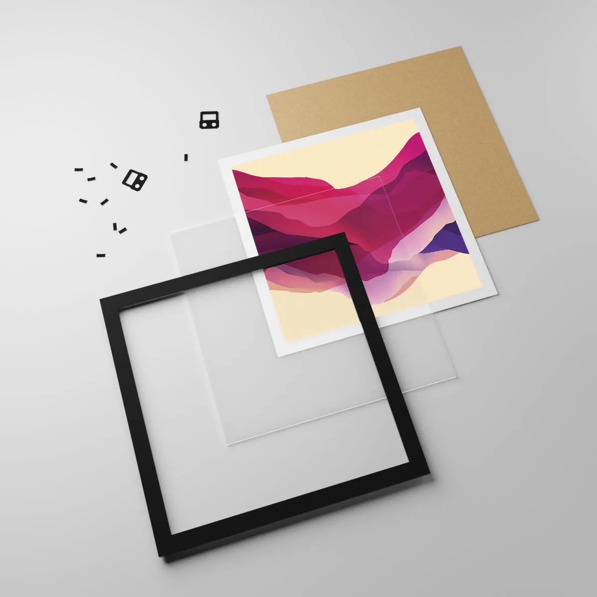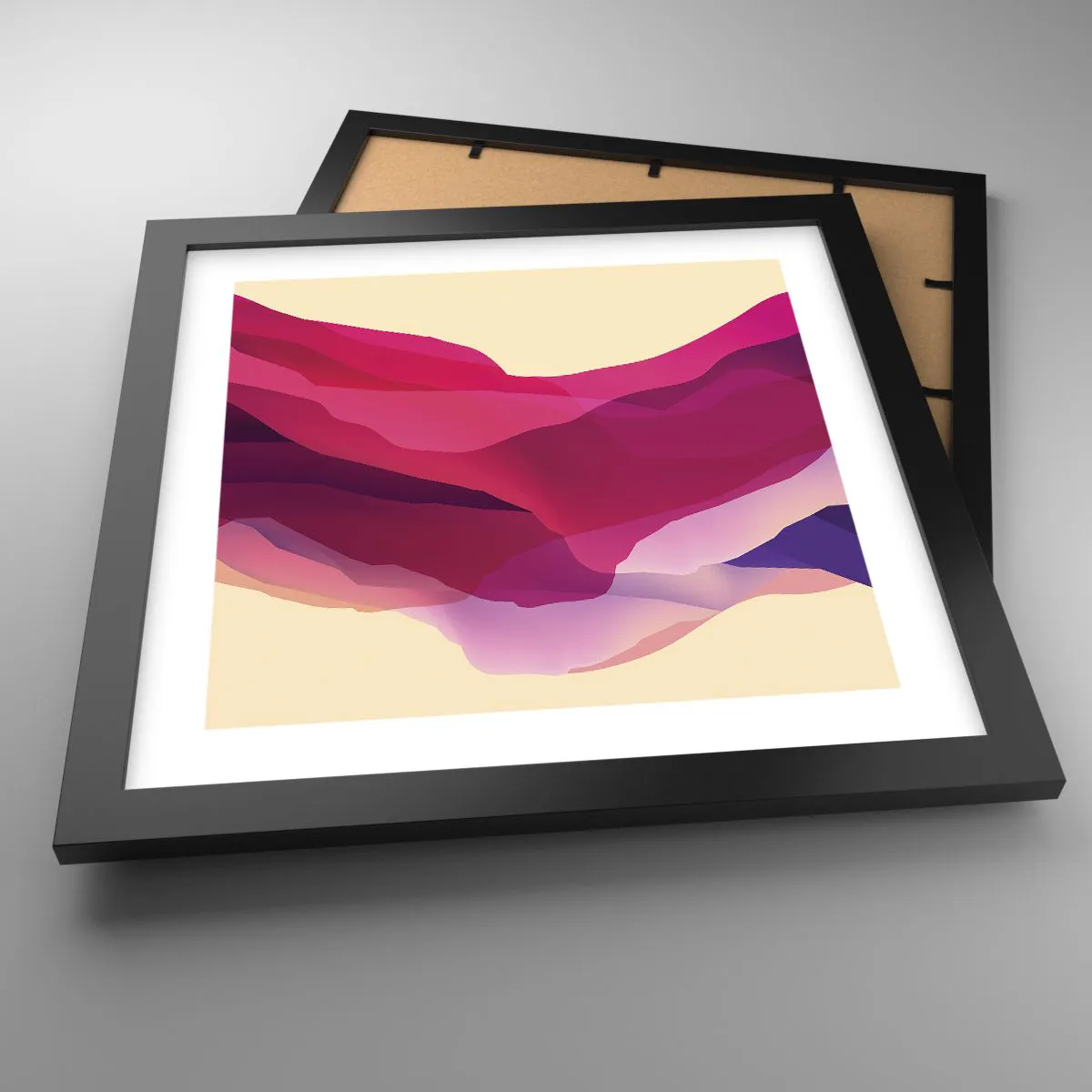Plakat w czarnej ramie - Fale purpury - 30x30 cm