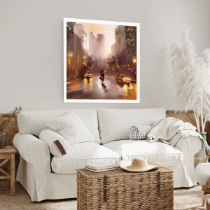 Plakat - Miejska scena nocą w świetle latarni i refleksach na mokrej ulicy - 100x70cm - W światłach Nowego Jorku - Nowoczesna dekoracja ścienna do salonu i sypialni ARTTOR