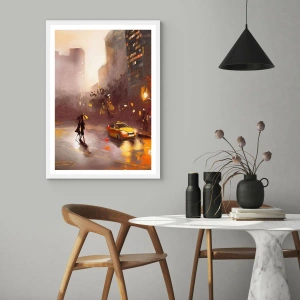 Plakat w białej ramie - W światłach Nowego Jorku - 40x40 cm