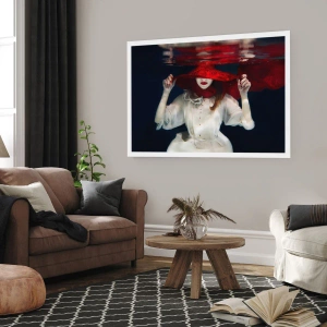 Plakat - Kobieta w czerwonym kapeluszu zanurzona w wodzie - 100x70cm - Dziwożona - Nowoczesna dekoracja ścienna do salonu i sypialni ARTTOR